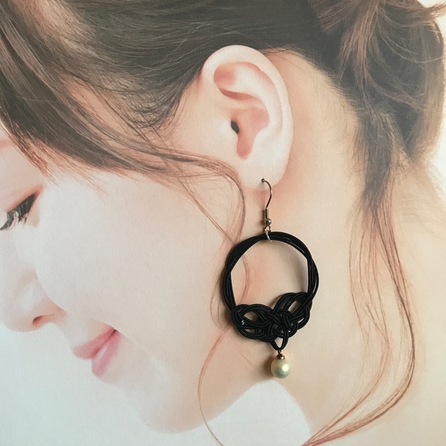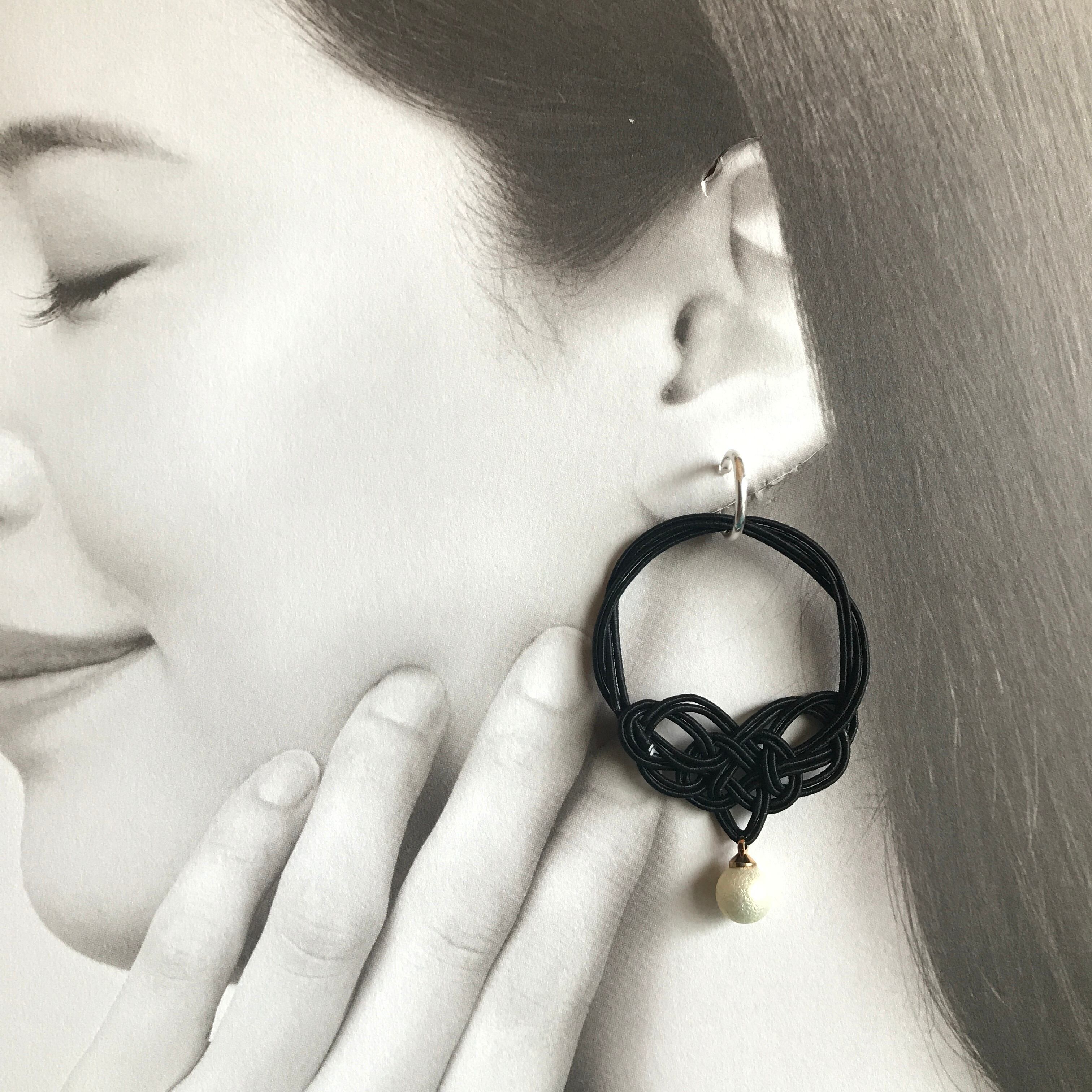 とても軽くて丈夫な水引で編んだ繊細なオリジナルハートモチーフのピアスです