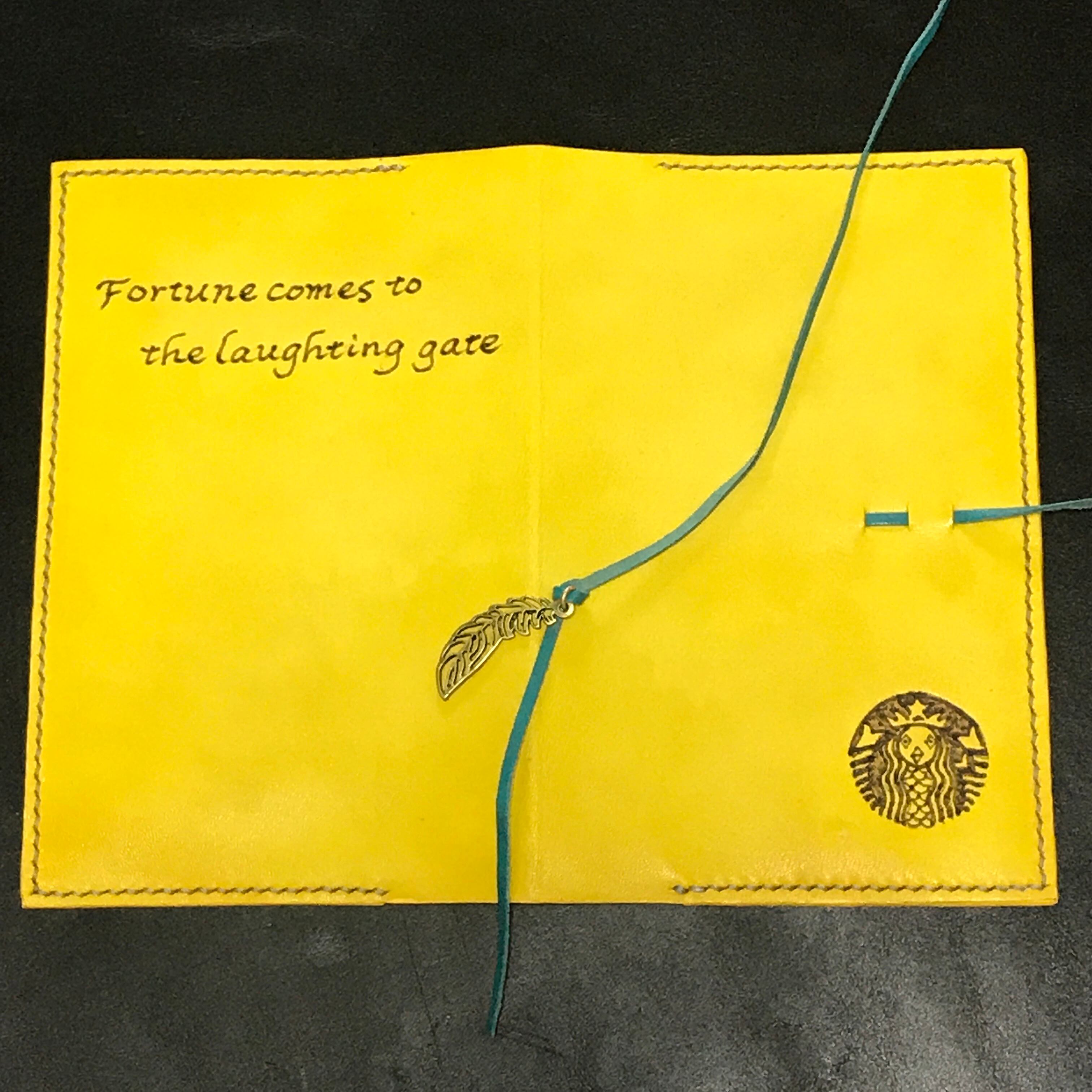 (この商品はレモンイエロー単色、ご希望の文字とイラストをレザーバーニング)