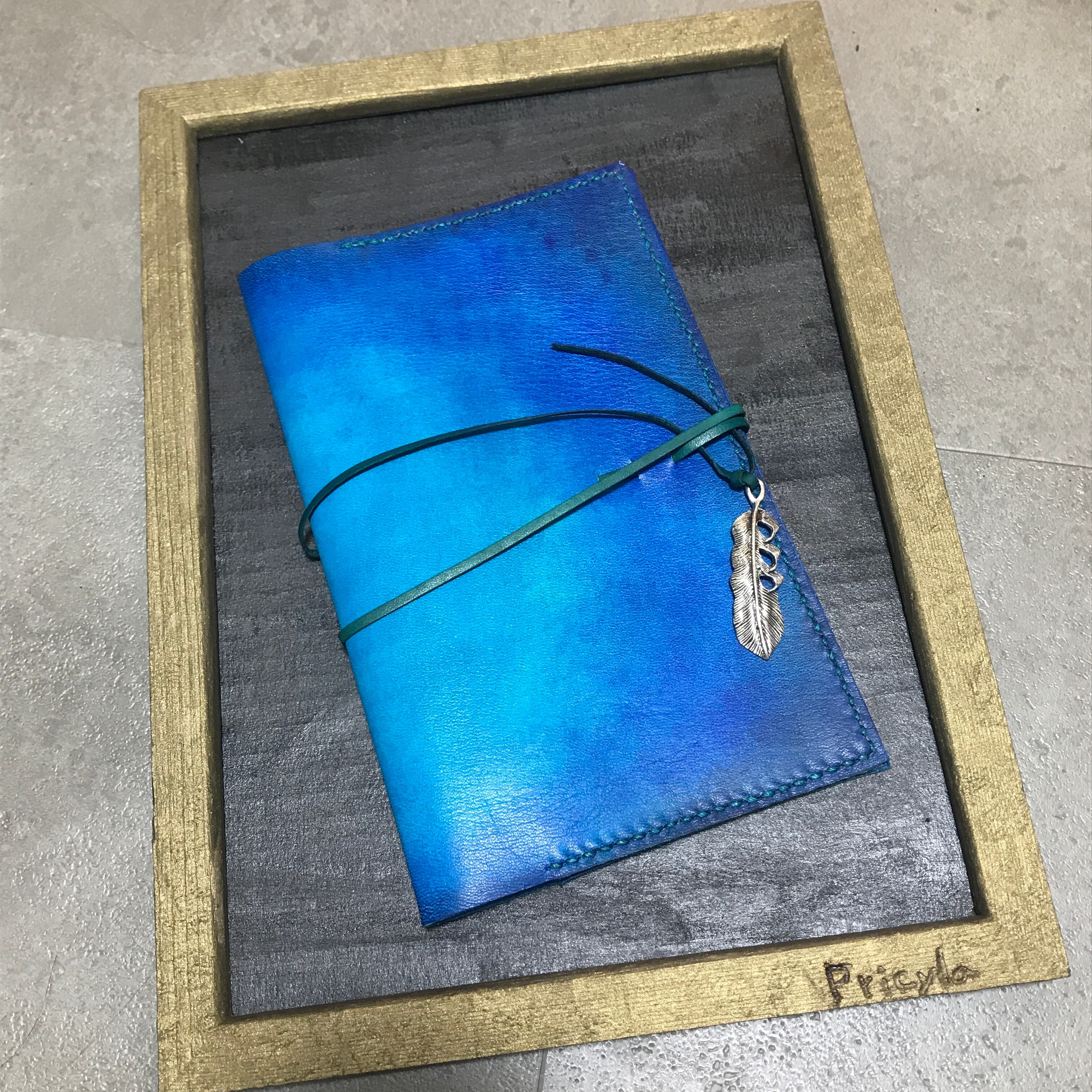 (この商品はブルー系3色グラデーション、ご希望の文字をレザーバーニング)