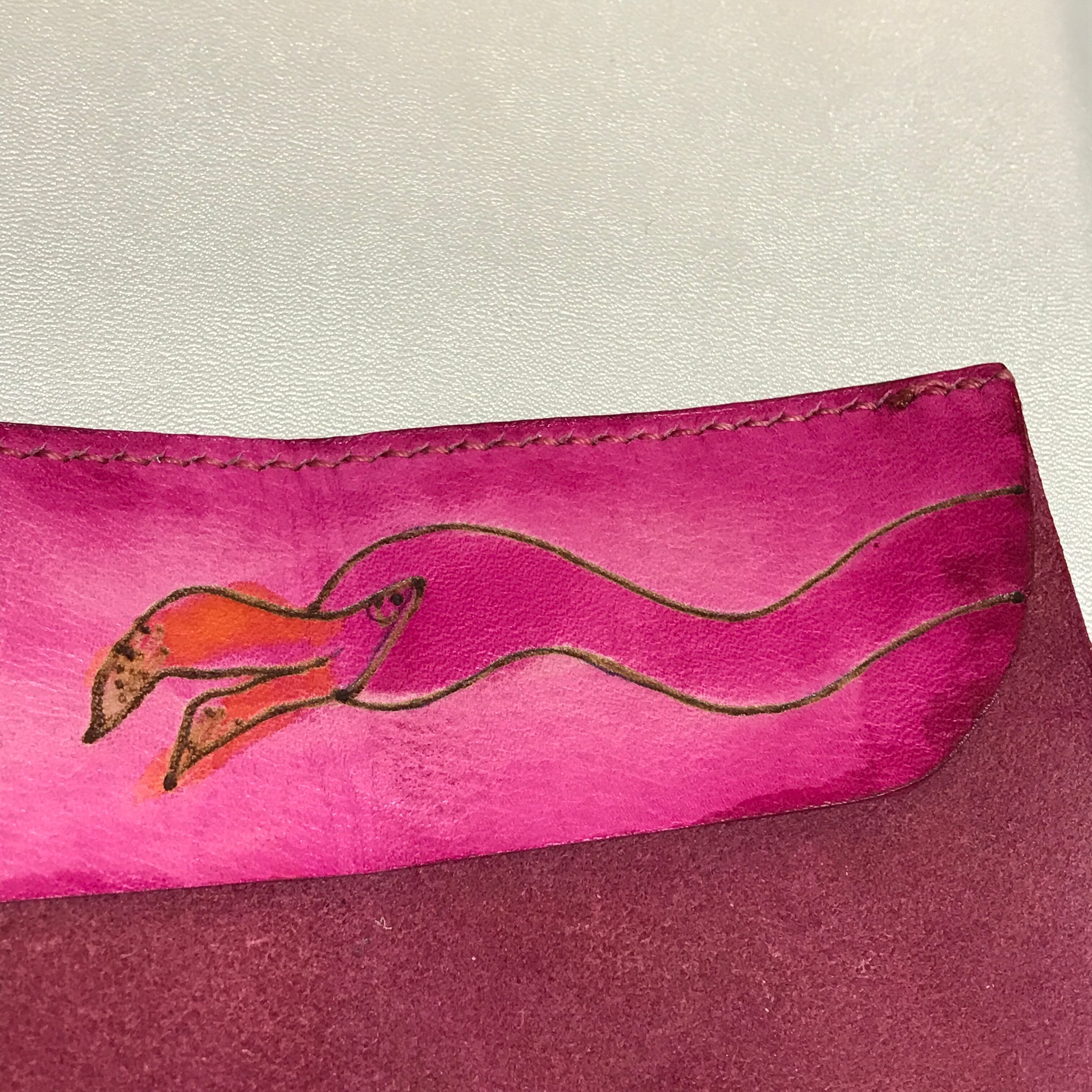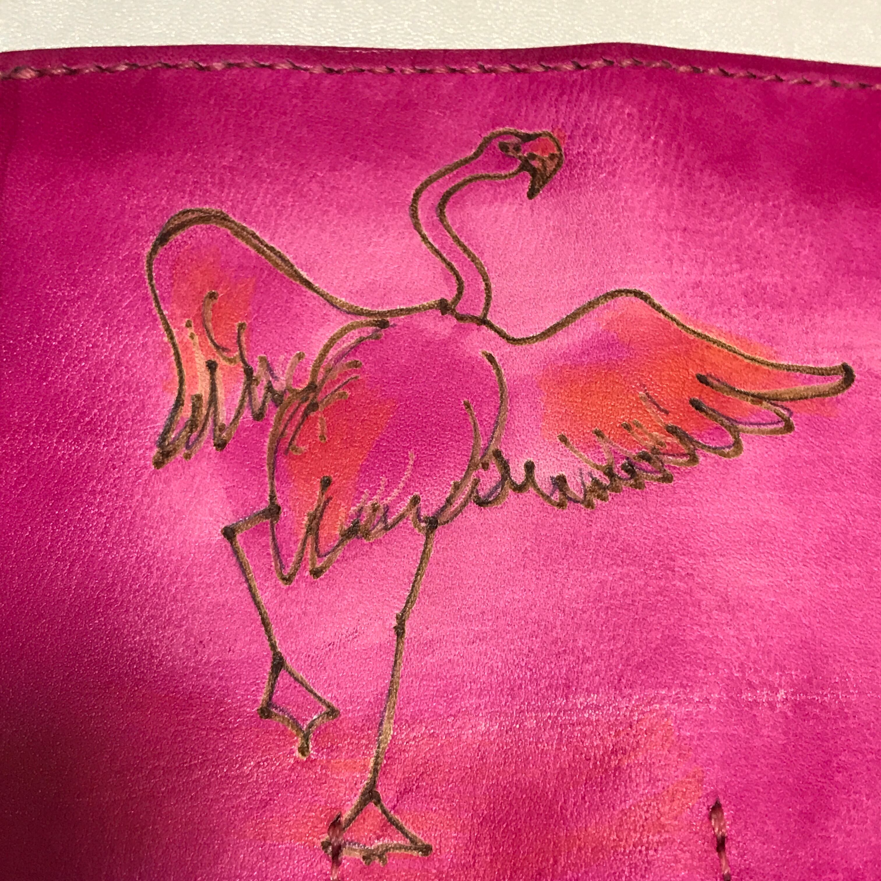 ご指定いただいた1〜3色程度のカラーをベースにニュアンスのある染色を施し、ご希望があればお好きな文字やイラストをレザーバーニング(電気ペンで焼き込み)で描きます