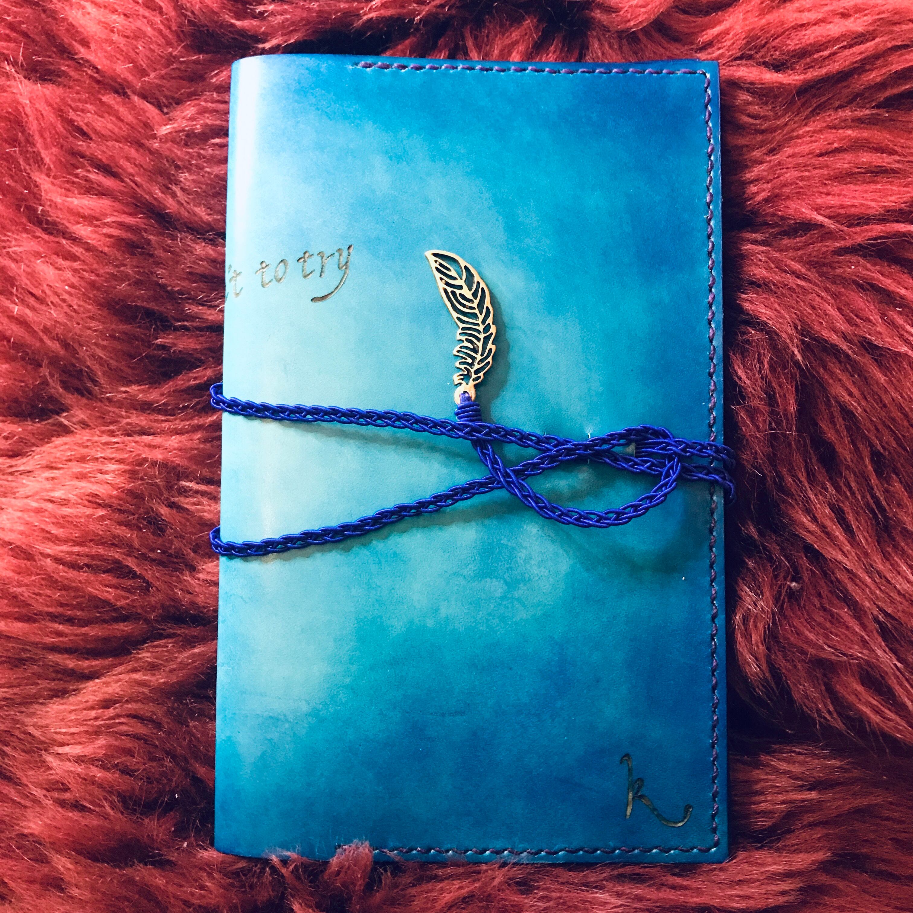 (この商品はブルーのグラデーション、ご希望の文字とイニシャルをレザーバーニング)