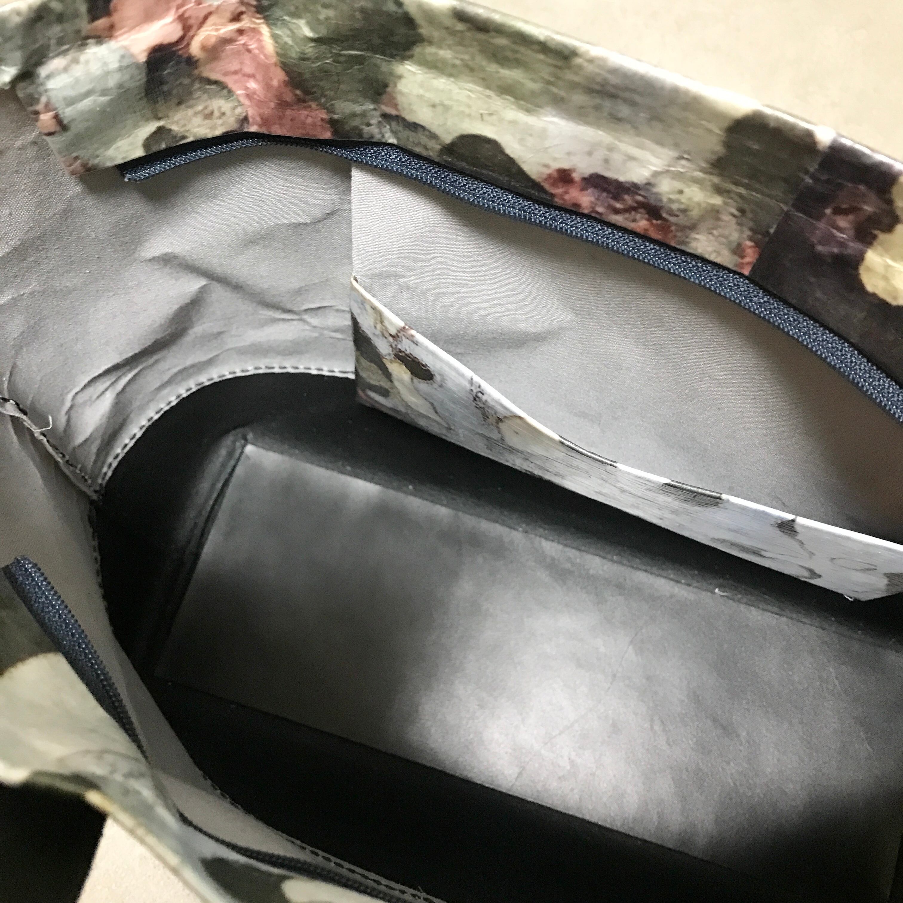 カモフラ部分はツヤのあるコーティングで防水加工されています(内側はコットン)