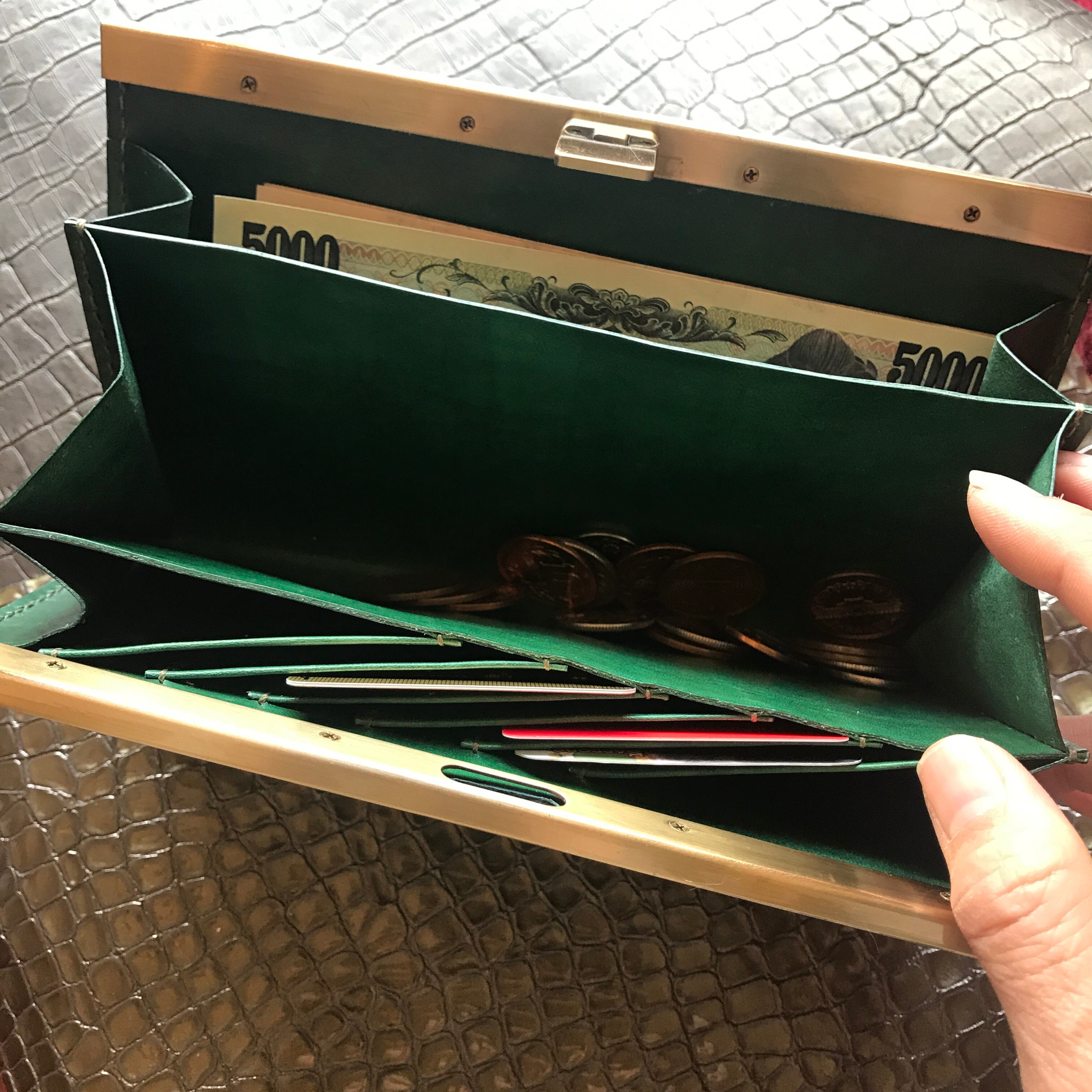 ミニクラッチのような口金で大きく開いて見やすい長財布