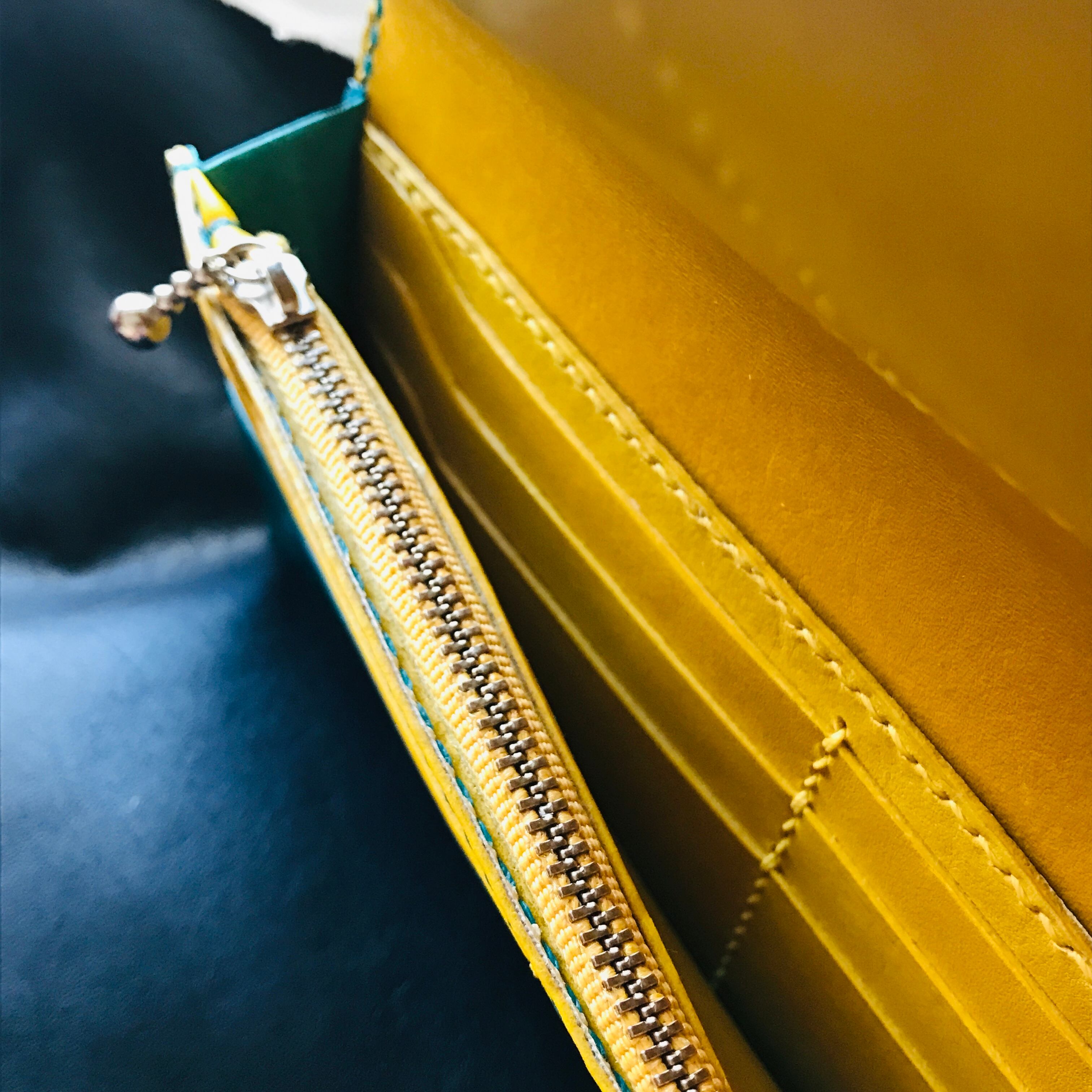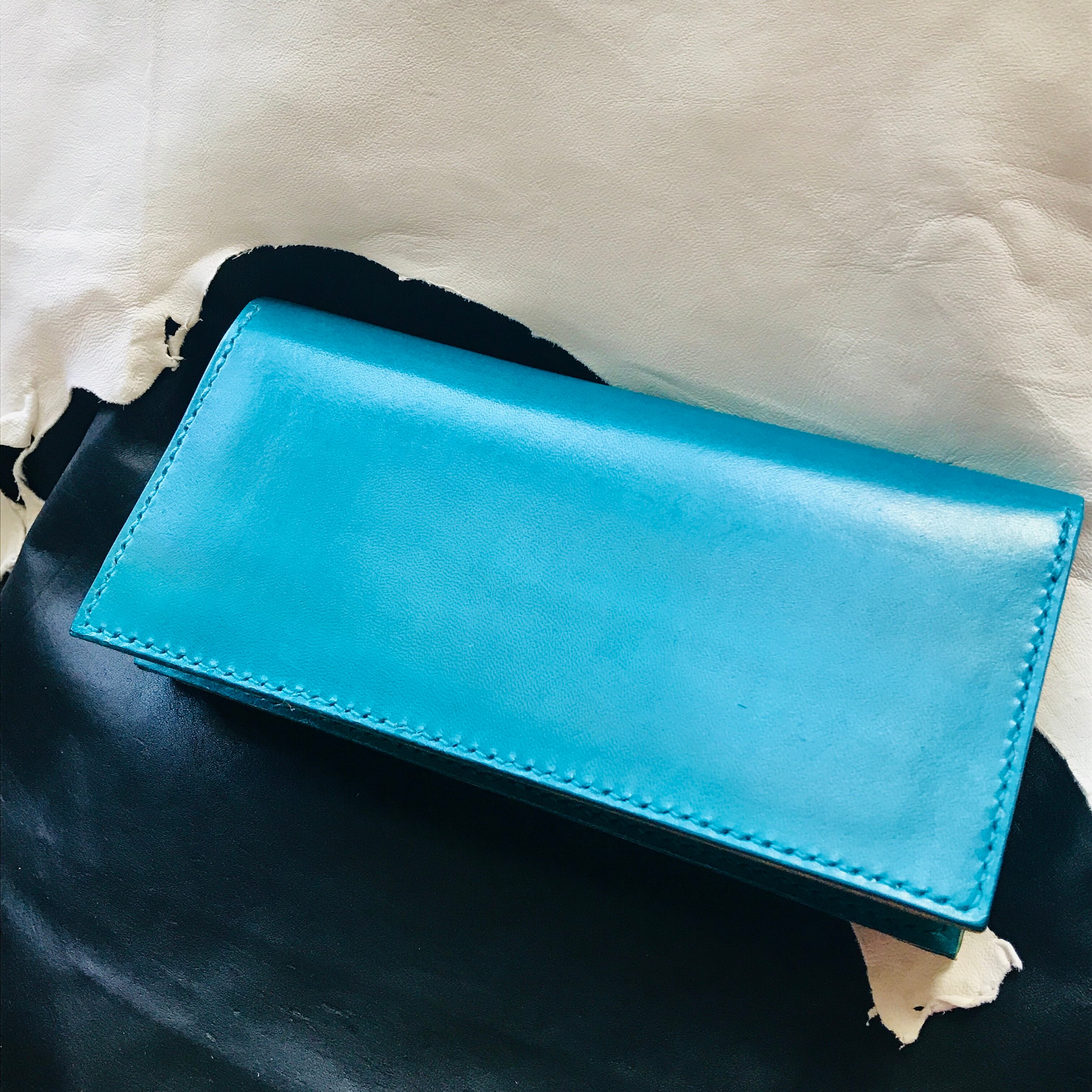ヌメ革をご希望のカラーに染め分けた二つ折り長財布