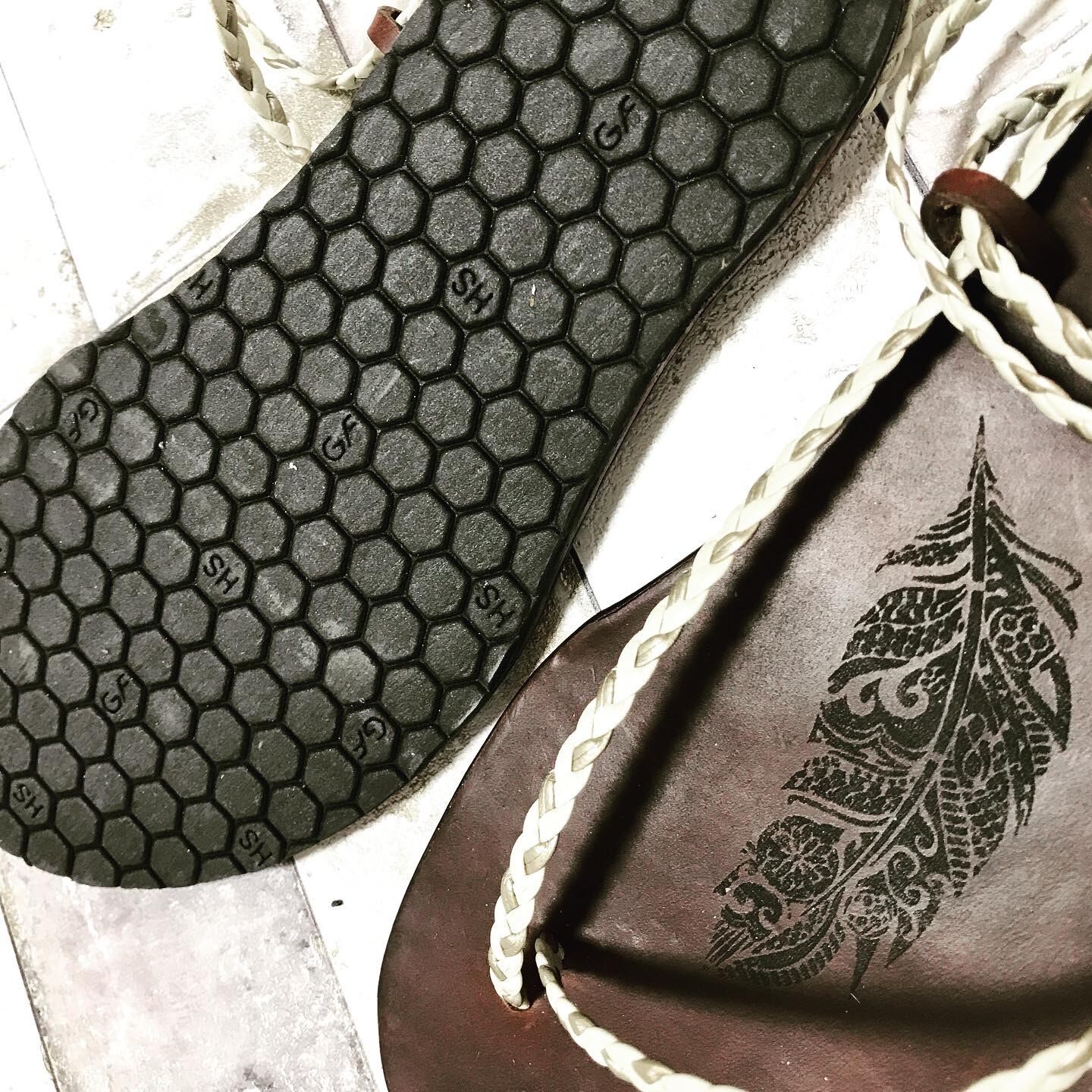 平三つ編みの革紐は肌触りが良く、鼻緒やアキレス腱も擦れないのでとても快適です