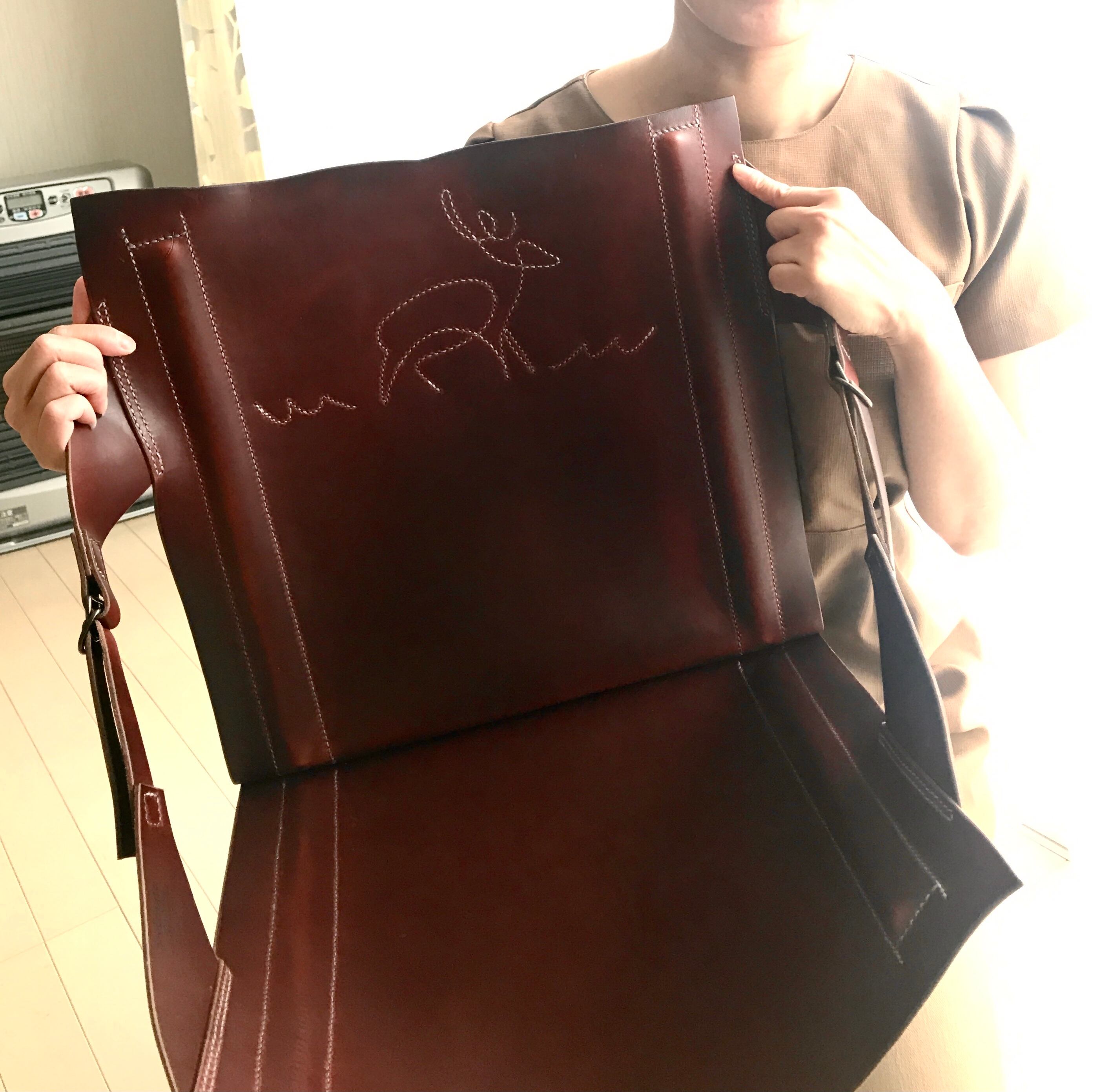 背もたれ部分には革の伸び止めを兼ねてお好きなモチーフでステッチを入れられます
