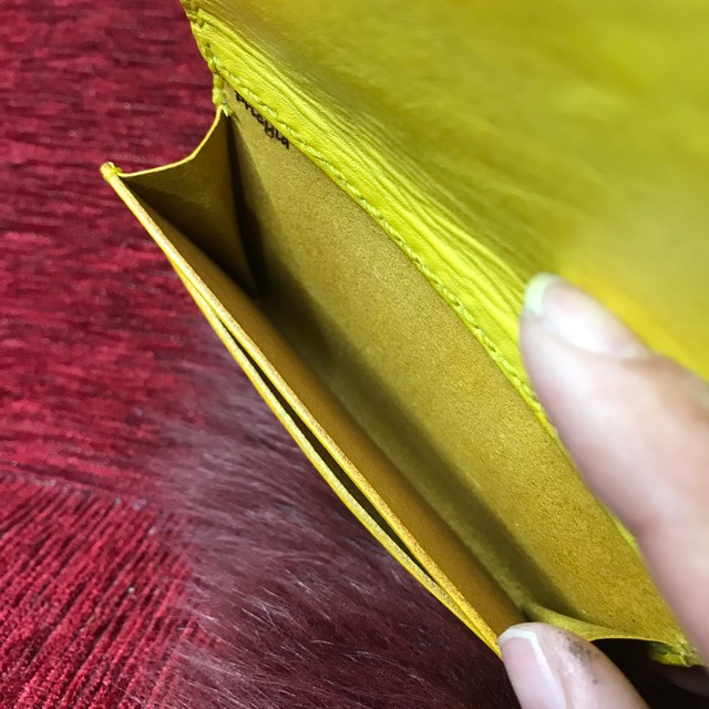 (この作品はレモンイエローの単色染め、名入れ、ポケット2か所)